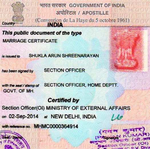 Apostille Services for Anand issued Marriage Certificate